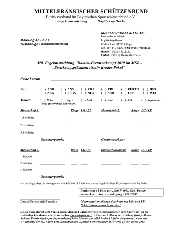Mtl. Ergebnismeldung "Damen-Fernwettkampf 2019 im MSB -